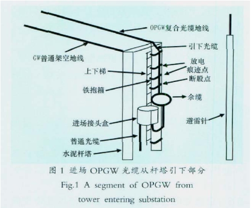 目前 , 在 220 k V 及以上线路中 , 大量使用 OPGW 作为保护和通信通道 。 OPGW 的损坏不仅 影响输电线路的安全运行 , 而且威胁到电力通信 的可靠性 。OPGW 损坏的原因有很多 , 本文以江苏 无锡供电局 220 k V 扬名变 OPGW 雷击 断股为 例 , 分析故障原因 , 并针对类似光缆故障提出防范 措施 。